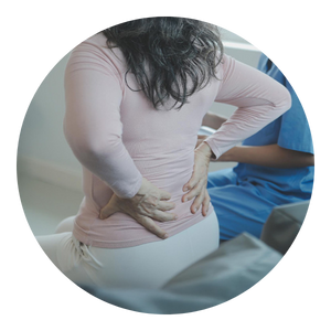 Dolor en la parte baja de la espalda que puede irradiar hacia glúteos o piernas. Provoca debilidad, entumecimiento y dificultad para realizar movimientos cotidianos.